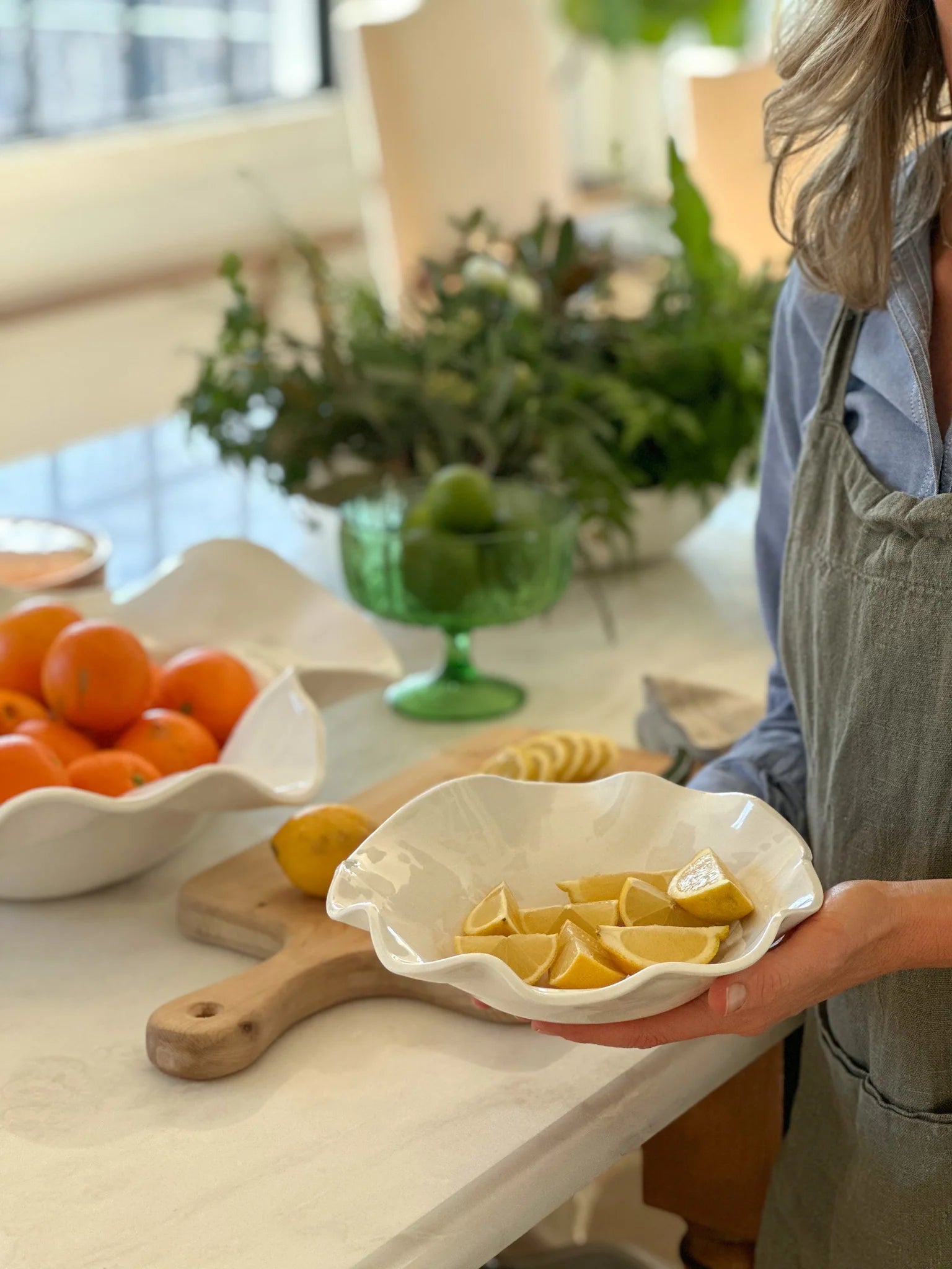 This organic feeling small bowl in the wavy collection makes every dip feel a little fancier without the fuss. It's also beautiful on the counter as a catch all or a place to stash your lemons and limes on the bar... so pretty and useful for pretty much anything.